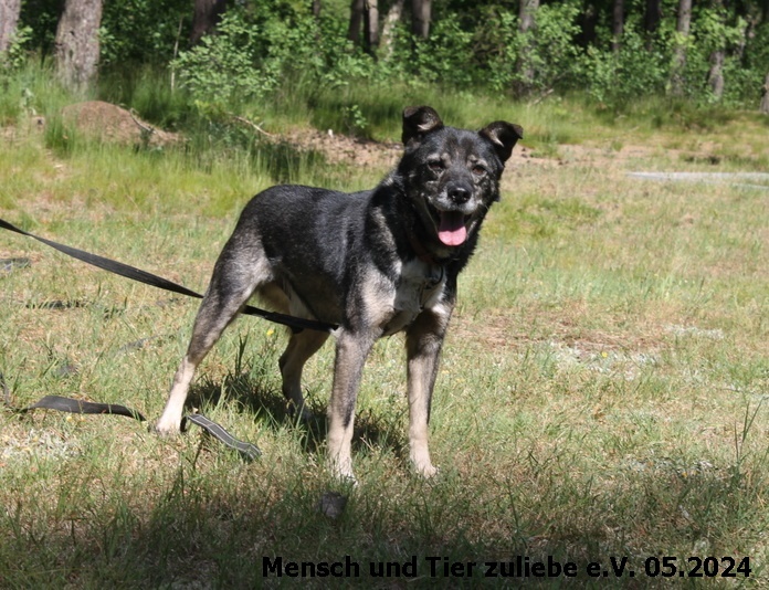Tobi kam ins Tierheim weil sein Besitzer verstorben ist. Er hatte ein gutes Leben, umso schwerer ist es für ihn jetzt in einem Zwinger zu sitzen. Er ist ca. 45 cm groß und soll 2013 geboren sein. Wir schätzen ihn allerdings jünger ein, er ist nämlich fit wie ein Turnschuh und hat richtig Lust auf ganz viele Abenteuer und Unternehmungen mit Menschen. Tobi würden wir als „Easy Going“-Hund bezeichnen und ihn können wir uns überall vorstellen, ob zu Hundeanfängern, rüstigen Rentnern, oder zu einer Familie. Er liebt Kinder und auch mit seinen Artgenossen ist er sehr sozial. Ein richtiger Kumpeltyp, der die Regeln im neuen Zuhause mit Sicherheit sehr schnell verstehen wird. Da er sehr menschenbezogen und aufmerksam ist, macht er das mit links! Tobi braucht keinen Zwinger, sondern seine Menschen!